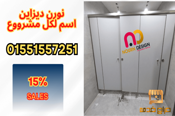 كومباكت HPL من نورن ديزاين يستخدم في قواطيع الحمامات وفواصل المباول وبارتيشن حمامات سمك 12 ملى والاكسسوار استانلس 304