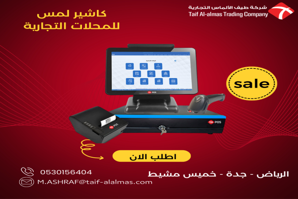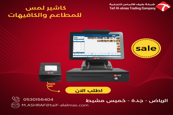 - جهاز كاشير باللمس عالى الجودة أو كمبيوتر