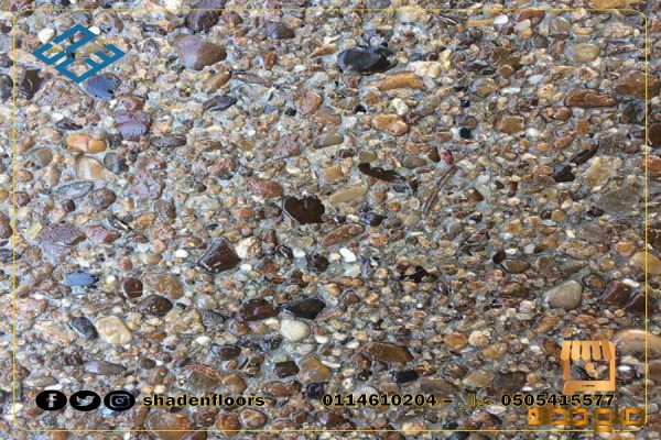 تشطيب السطح: يمكن استخدام مادة تثبيت مثل الأسمنت لضمان تماسك الحصى مع بعضها البعض وزيادة متانة السطح.