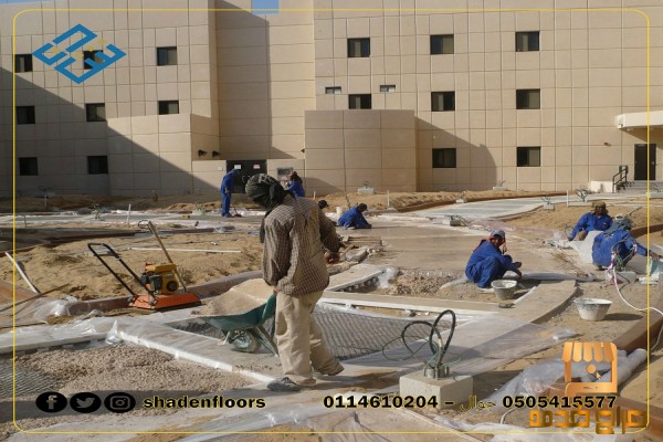 المكونات: خليط من الأسمنت والمواد الكيميائية الخاصة التي تجعلها تنتشر وتستوي بنفسها.