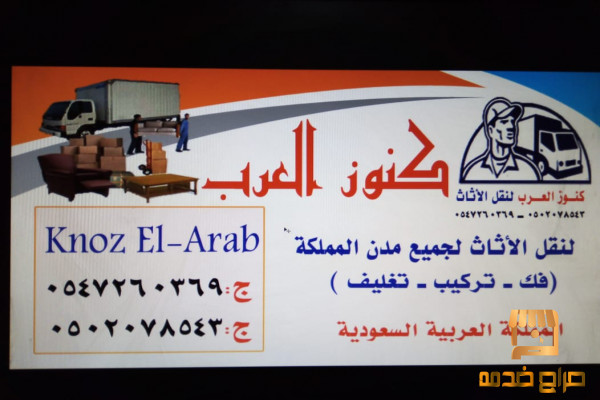 - كنوز العرب لنقل العفش والفك والتركيب والتغليف لجميع مدن المملكة بسيارات حديثة