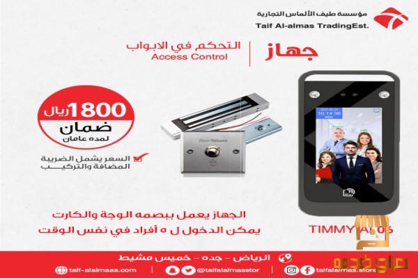 احدث اجهزة الاكسس كنترول من شركة TIMMY ، AI 06 اكثر من اصدار وأجهزة تلائم جميع الابواب اولاً : جهاز فتح الباب يلائم جميع الابواب الداخلية الموصفات : - يدعم الدخول ببصمة الوجة أو الكارت أو الرقم السري - مزود بــــمنفذ USB - ETHERNIT يدعم عدد بصمات الوجة حتي 5000 - يدعم عدد الحركات 50000 الف حركة سعر الجهاز 1800ريال شامل التركيب والضريبة شامل التدريب و التركيب ضمان عامان ضد عيوب الصناعه التركيب يشمل جهاز الاكسس + القفل المغناطيسي + براكت حامل القفل + زر الفتح من الداخل #الاقفال_الالكترونية_للابواب #الاقفال_الالكترونية_الرياض #انواع_الاقفال_الالكترونية #اسعار_الاقفال_الالكترونية #تركيب_الاقفال_الالكترونية #شركات_الاقفال_الالكترونية #نظام_الاقفال_الالكترونية #احدث_انواع_الاقفال_الالكترونية_فى_العالم