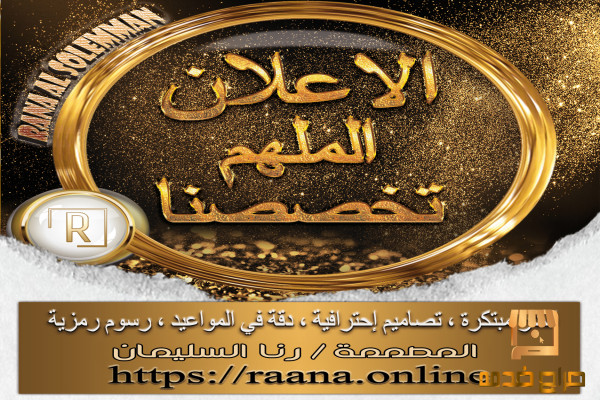 المصممة رنا السليمان ، مختصة في تصميم اعمال الدعاية والاعلان من بروشورات و منشورات سواء على التواصل الاجتماعي او للمنشآت التجارية والشخصية بالإضافة الى عمل مقاطع الفيديو الترويجية والاعلانية للمنتجات والهيئات التجارية والشخصية و بأسعار رمزية جدا بإخراج احترافي متميز