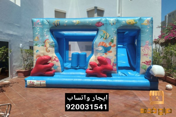 مؤسسة كوخ المرح توفر لك نطيطات هوائية، زحاليق مائية، وملاعب صابونية بأحجام وأشكال تناسب كل المناسبات للايجار
