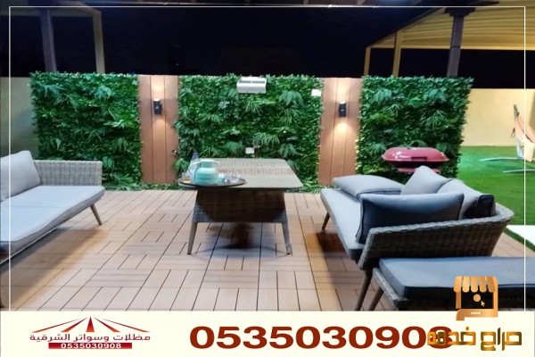 الأرضيات: استخدام مواد متنوعة مثل الحصى، العشب الصناعي، أو الأخشاب لإنشاء أرضية مريحة وجميلة.