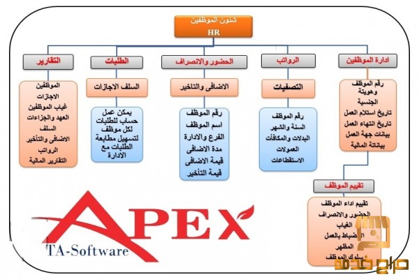 مع برنامج ((APEX)) لادارة شئون الموظفين والموارد البشرية ((HR)) انت تمتلك هيكلة الكترونية لكافة الموظفين العاملين بمؤسستك بالكامل بامكانك إدارة كل مايتعلق بالموظفين بسهولة...