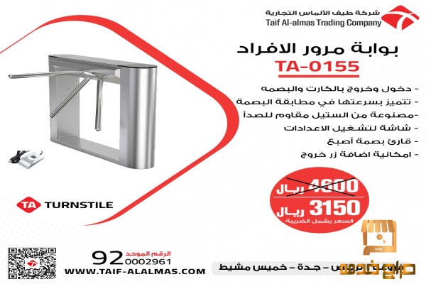 البوابة تعمل بالبصمة او الكارت مع امكانية اضافة زر للخروج