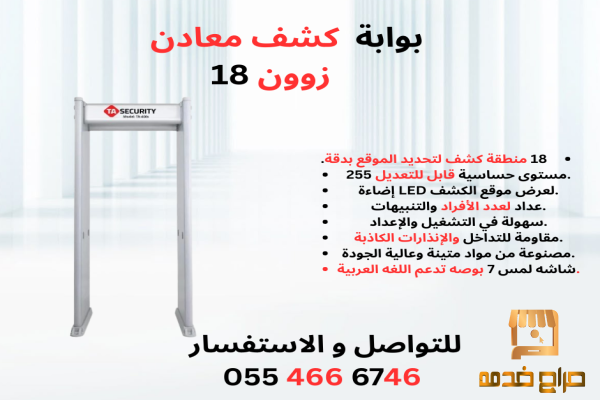 نوفر لكم بوابات كشف معادن **18 زون** بأعلى جودة وتقنية حديثة تناسب: