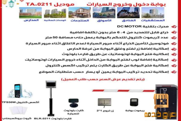 المواصفات الفنية لبوابة التحكم الالكترونية لمواقف السيارات TA BARRIER TA-0211