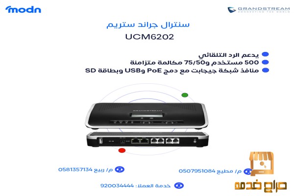 تركيب سنترال جراند ستريم UCM6202 بمنفذين وبدعم 500 مستخدم و30 مكالمة