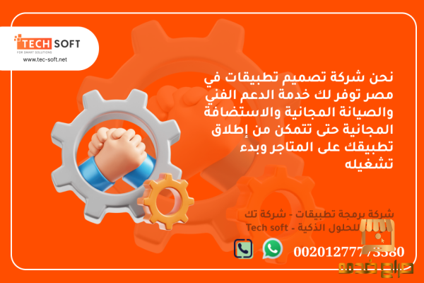 • نحن شركة تصميم تطبيقات في مصر توفر لك خدمة الدعم الفني والصيانة المجانية والاستضافة المجانية حتى تتمكن من إطلاق تطبيقك على المتاجر وبدء تشغيله .