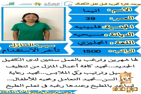 يوجد ومطلوب عاملات منزليه للتنازل من جميع الجنسيات للتواصل