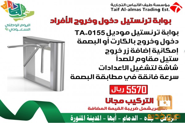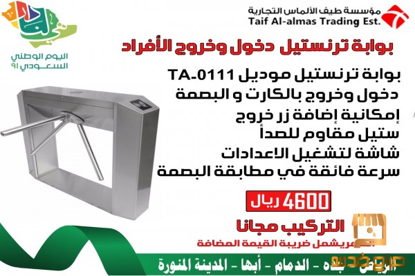 بوابات تعمل على تنظيم الدخول والخروج من إلى المكان تعمل بالبصمة والكارت