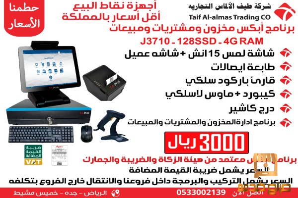 نفدم لكم ارخص جهاز كاشير في المملكة مع برنامج معتمد من هيئة الزكـاة والضـريبة والجمارك ويدعم الفاتورة الالكترونية