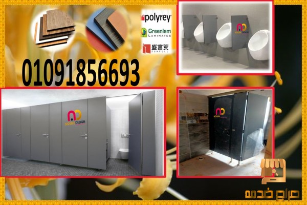 كومباكت HPL من نور ديزاين يستخدم في قواطيع الحمامات وفواصل المباول وبارتيشن حمامات سمك 12 ملى والاكسسوار استانلس 304