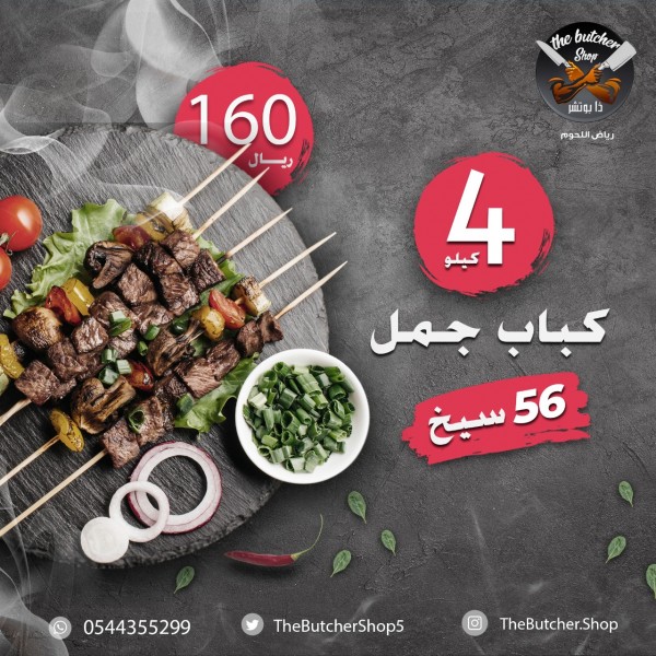 4 كيلو كباب جمل 54 سيخ 160 ريال