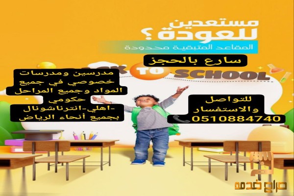 مدرسين ومدرسات خصوصي في جميع المواد لجميع المراحل بكل أنحاء الرياض لدينا نخبة من أفضل المعلمين والمعلمات للتدريس خصوصي بأفضل الأسعار للمتابعات اليومية والمراجعات من تمهيدي حتى الجامعة للمناهج الخاصة بالمدارس أهلي وحكومي وانترناشيونال والجامعات في كافة المواد للتواصل واتس آب