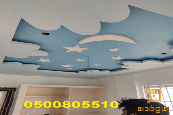 الأسقف المعلقة: الأسقف المعلقة من الجبس تُستخدم لإخفاء الأسلاك والتمديدات الكهربائية ويمكن تصميمها بأشكال متنوعة لتناسب ديكور الغرفة.