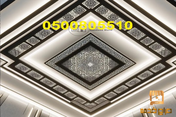 الأشكال الهندسية: استخدام الأشكال الهندسية مثل المربعات، المستطيلات، والدوائر يمكن أن يضيف مظهراً عصرياً وأنيقاً للسقف.
