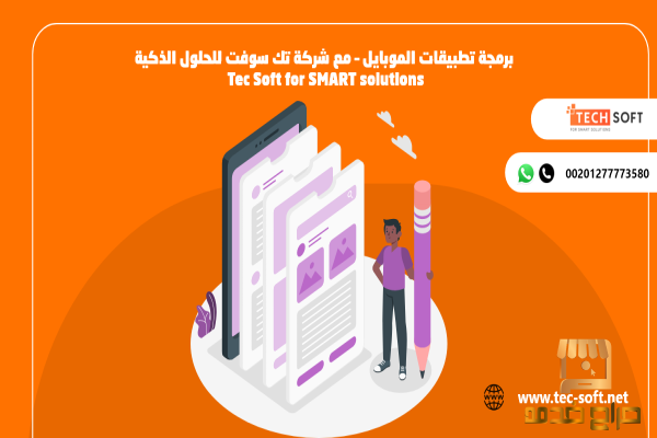 • برمجة تطبيقات الموبايل : مع شركة تك سوفت للحلول الذكية لأنها تقوم بتحليل فكرة تطبيقك بشكل كامل وإضافة الخصائص التي تتناسب مع البزنس الخاص بك .