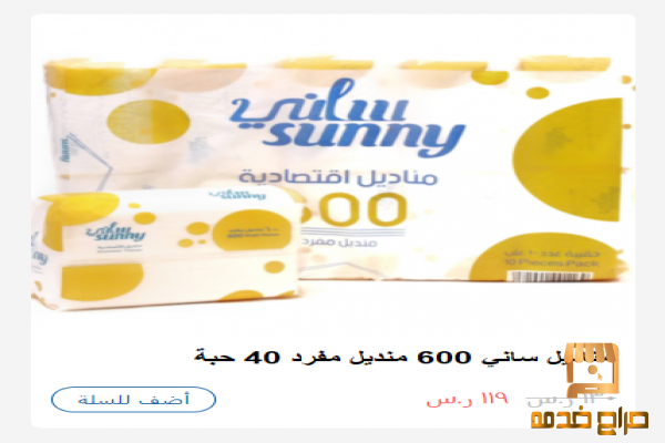 مناديل سانى 600 منديل مفرد الشد 40حبة 119ريال